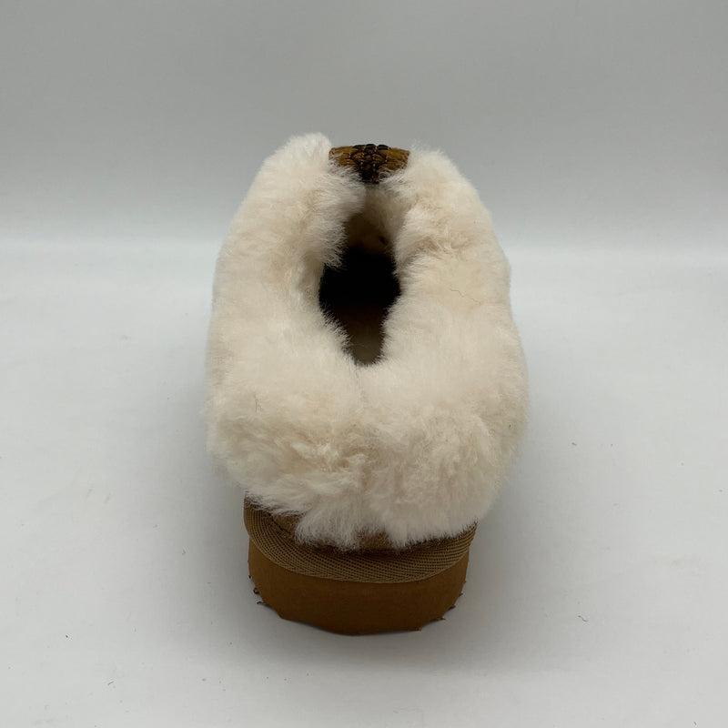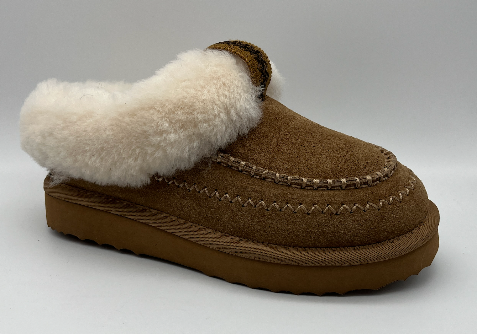 Besondere Qualitätsmerkmale – echte Lammfell – Robuste Schurwolle als Decksohle – Suede Leder Obermaterial – EVA Sohle