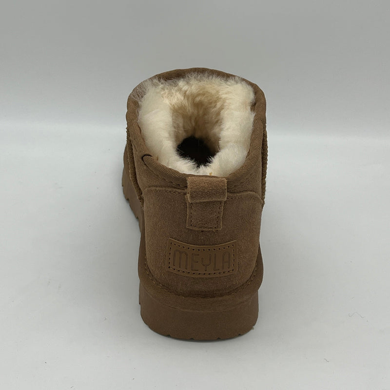 Das Modell FIRA von unserem neuen Hersteller MEYLA ist unschlagbar in Wärme und Natürlichkeit. Durch die Verwendung von echtem Lammfell im Schaftbereich und Schurwolle als Decksohle sowie Leder als Obermaterial haben Sie nur die besten Materialien aus unserer Natur in Verwendung. Eine angenehme Wärme und ein gesundes Fußklima ist daher garantiert. Das reduzierte Design und der ultra kurze Schaft vervollständigt den aktuellen Trend.